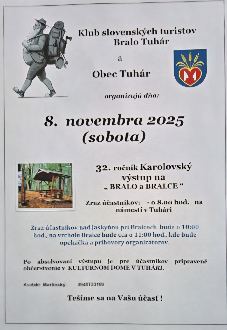 - možnosť individuálne sa zúčastniť akcie v Tuhári na 32. ročníku Karolovho výstupu na Bralo a Bralce
